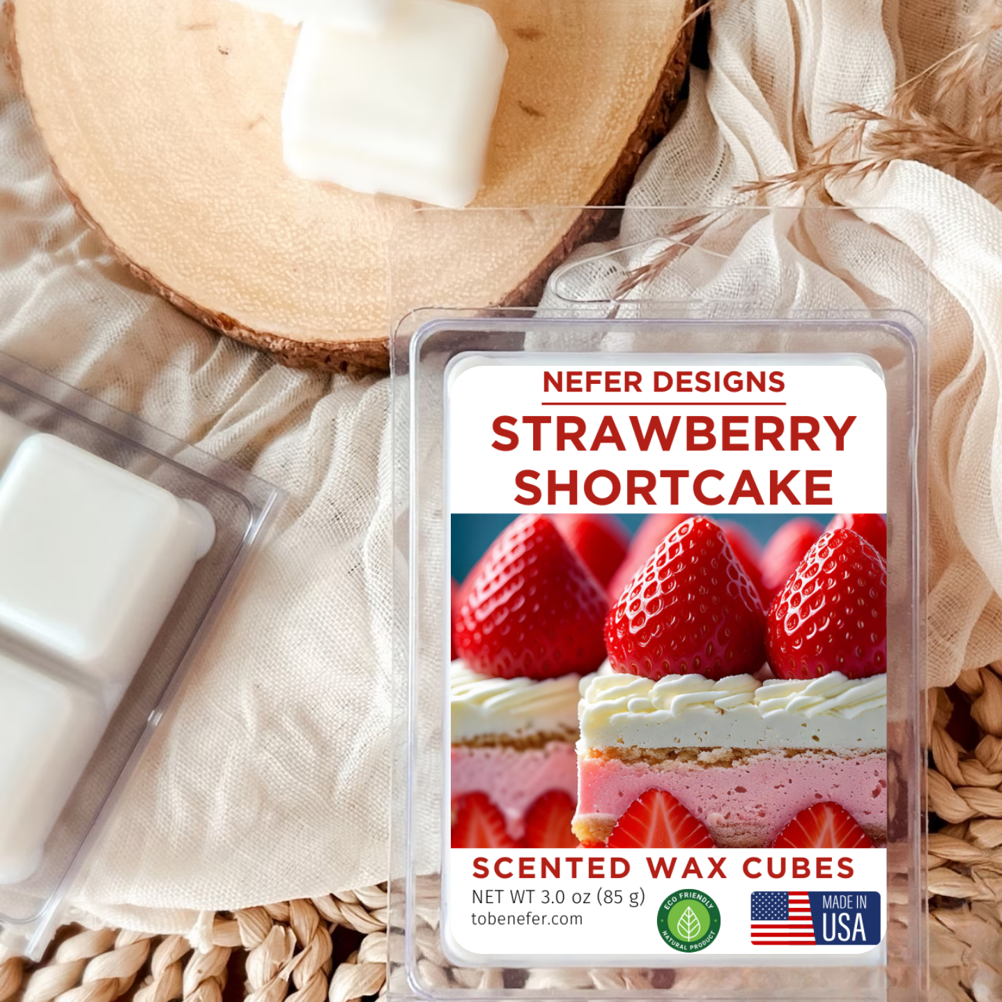 Get ready to indulge in the delightful scent of Strawberry Shortcake wax melts. Featuring a mouthwatering blend of fresh strawberries, creamy vanilla cake, and a hint of whipped cream, our hand-poured soy wax melts are perfect for any occasion. Whether it's a birthday bash, holiday celebration, or just a fun treat for friends, these six-cube containers pack a powerful punch of fragrance.